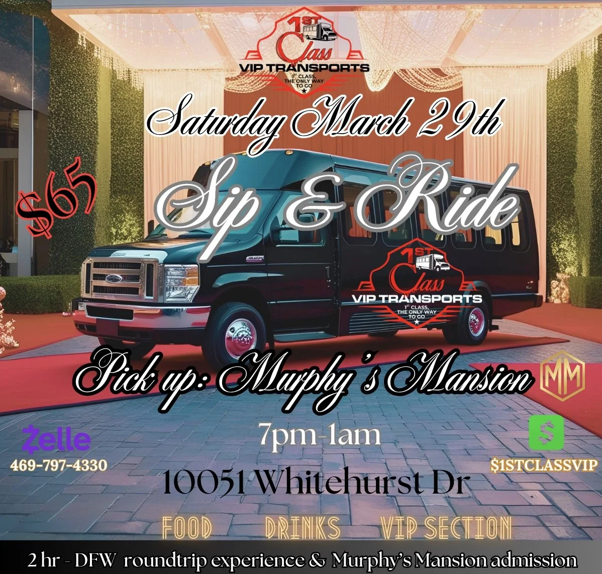 Mar 29 to Mar 30 1st Class VIP Transports Soft Launch Sat, Mar 29, 2025 7:00 PM Sun, Mar 30, 2025 1:00 AM The Mansion Bar (map) Google Calendar ICS Are you ready to ride in 1st Class? View Event →